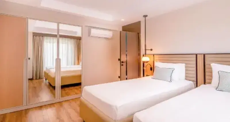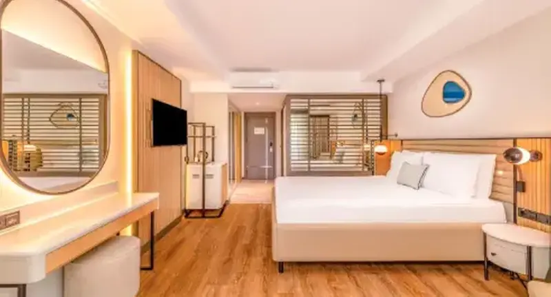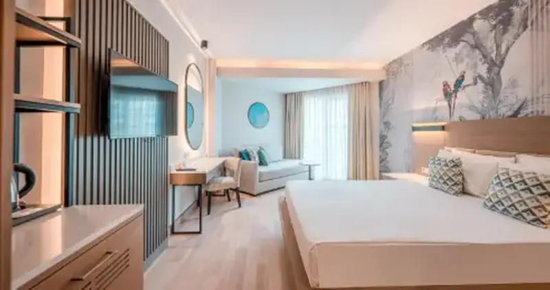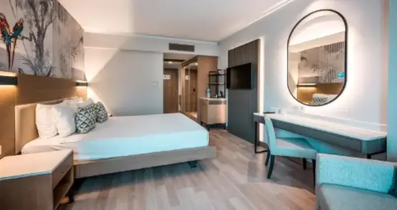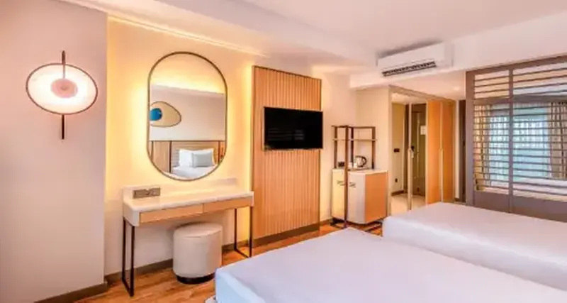 Comfort Standard Rooms feature a double bed, two single beds, a double bed and a single bed, or a double bed and a sofa bed. Room Size: 28 m2 Room Features: Safety Deposit Box Split Air Conditioning Tea and Coffee Set Television Water Kettle Shower Hair Dryer Slippers Balcony or Terrace Bathroom Wifi Garden View Minibar WC Laminate Flooring Telephone (Chargeable) Bathroom Amenities